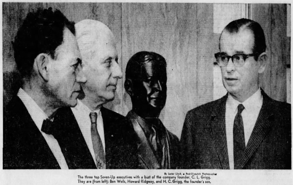 Hamblett Charles Grigg, Charles Grigg’s son, shared his father’s interest in marketing and advertising. After completing coursework at Washington University and working for an advertising sign company in St. Louis, he joined what was still the Howdy Company in 1929. Ben Wells, a son-in-law of cofounder Frank Gladney, joined the company in 1936 as an advertising agent. Wells became the company’s president in 1965 and chairman emeritus in the 1970s. Howard Ridgeway, the son of cofounder Edmund Ridgeway, eventually became the Seven-Up Company’s executive vice president.
