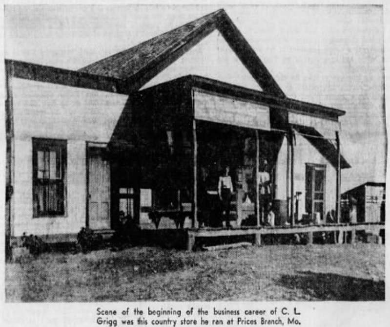 Charles Leiper Grigg was born in Prices Branch, Missouri, on May 11, 1868, to Charles L. S. Grigg and Mary Elizabeth Leiper Grigg. His parents managed the day-to-day operations of the family farm, and his father later served as a constable for Bear Creek Township in Montgomery County. After receiving an education at a local one-room schoolhouse, Grigg worked as a farmer until he began managing a general store with his brother, Hamblett Clark Grigg, in Prices Branch.